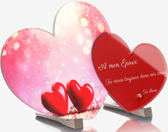 PL 9 - Plaque plexi coeur double image au choix à préciser 40x23.4 sans photo.