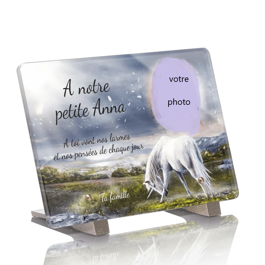 PLR 8 - Plaque plexi rectangulaire 40x27 avec pied et photo, image au choix.